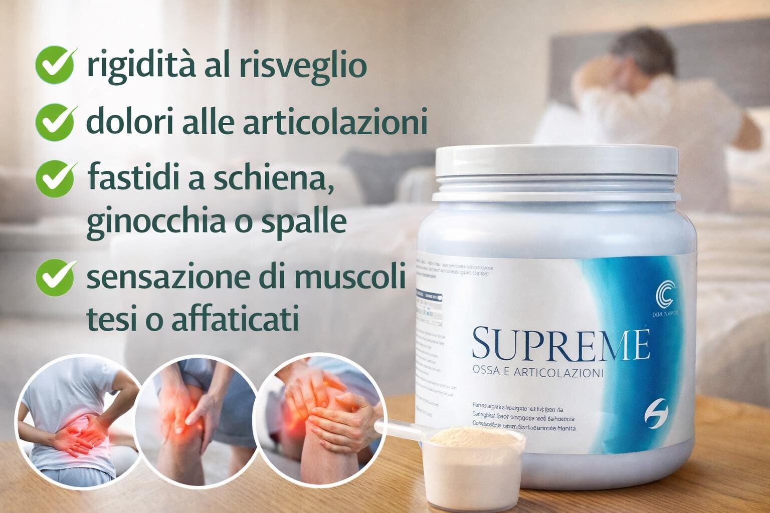 Tra i prodotti pensati per sostenere la salute delle articolazioni troviamo Supreme Ossa e Articolazioni.